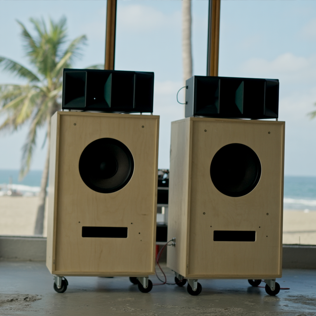 Creamos sistemas de sonido únicos, fabricados a mano en Ibiza. Combinamos trompetas Altec Lansing, componentes Electro-Voice vintage y nuestras propias bocinas artesanales, para un sonido cálido, potente y analógico.